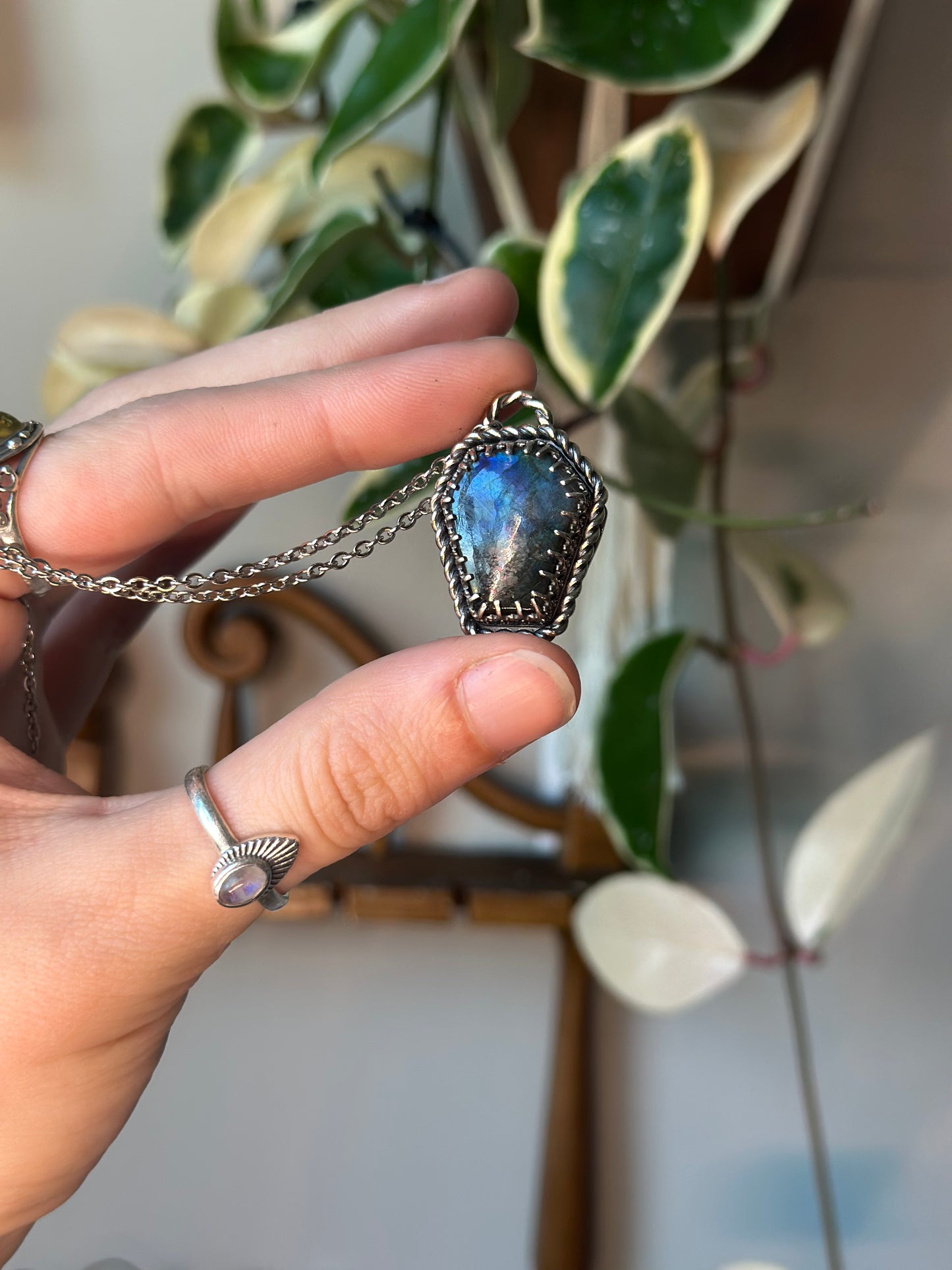 Labradorite is known for helping to calm overactive minds that are prone to anxiety and stress. It is a useful stone to have through times of change, supporting strength and perseverance. Labradorite also helps to raise the consciousness of the wearer as well as aligning the physical and etheric bodies.