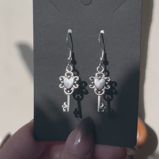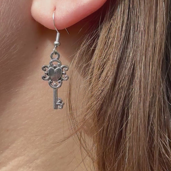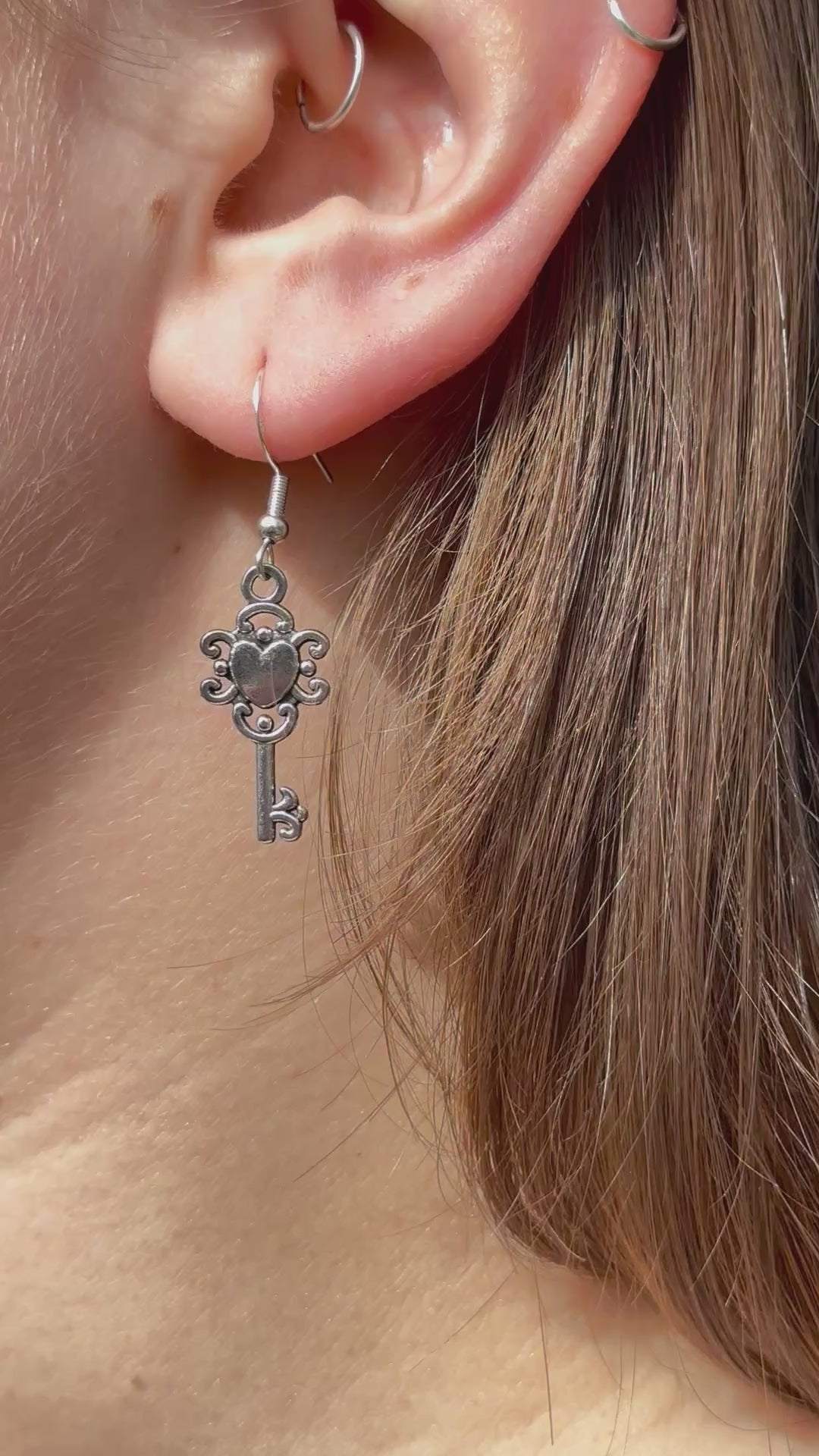 Unlock the softer side of your style with these romantic heart key earrings. Featuring an ornate vintage-style skeleton key with a raised heart detail, these earrings blend delicate charm with a hint of fairytale mystery. Lightweight and eye-catching, they’re perfect for romantics, dreamers, and anyone who believes in a little magic.