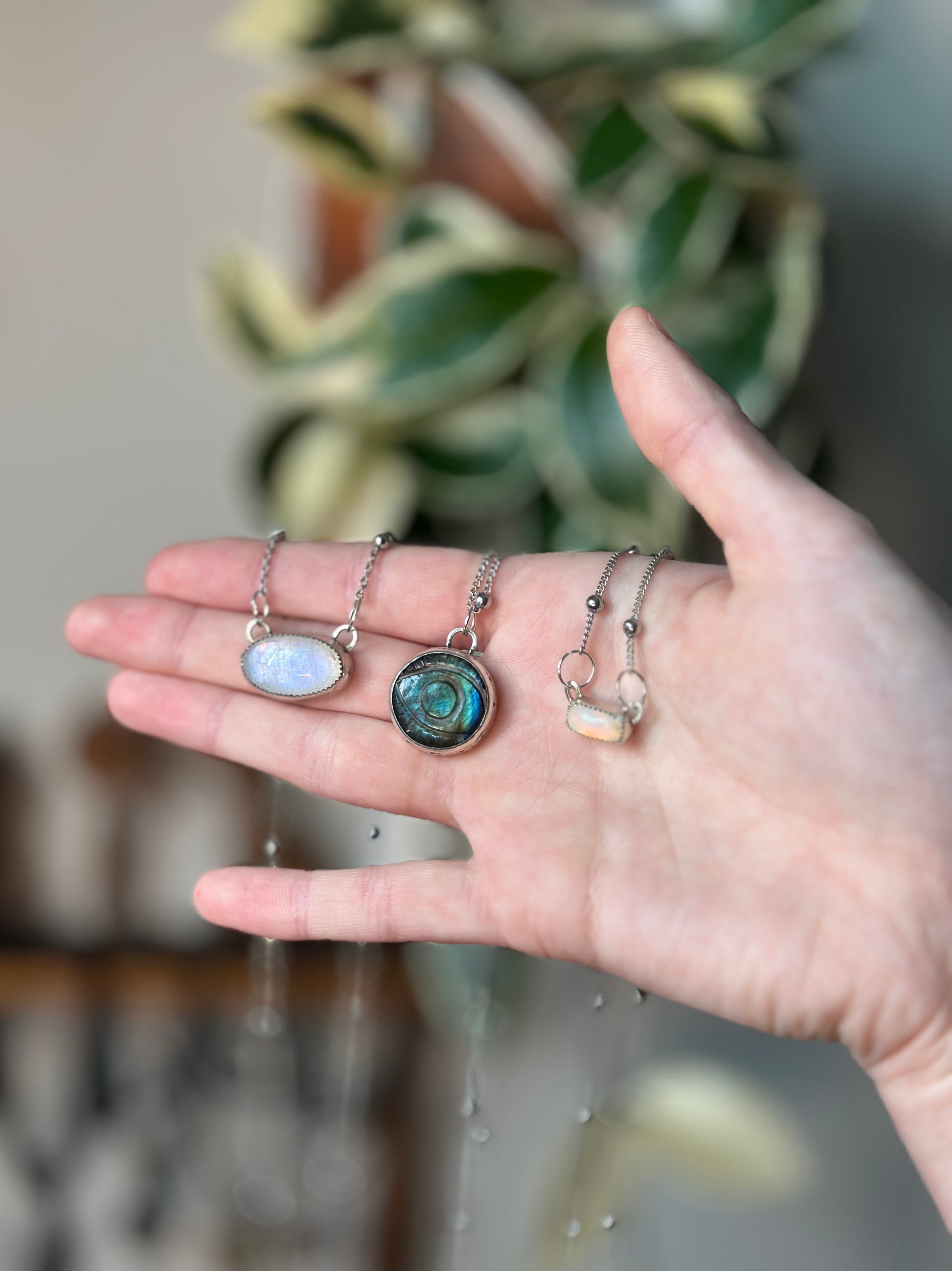 Ethiopian Opal acts as a shield against negativity, and helps to sooth and stabilize emotions. It helps to bring feelings of balance and peace, making this the perfect protective, and emotionally soothing amulet.